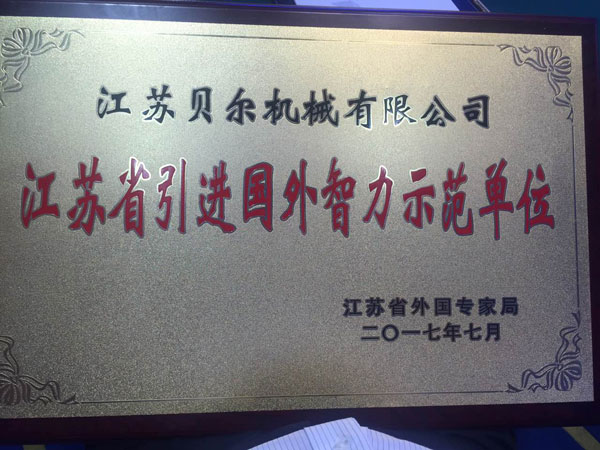 今日,江蘇貝爾機械獲得了由江蘇省外國專家局授予的 江蘇省引進國外智力示范單位 稱號。"中國的快速發(fā)展,及國家對科學(xué)研究的重視,使中國逐漸開始成為全世界科學(xué)家向往的國度,"國家外國專家局局長張建國說。不斷開放的中國正在歡迎越來越多具有真才實干的外國專家。統(tǒng)計顯示,1980年,來華工作的境外專家僅數(shù)百人,2008年,增加到48萬人次,到2011年,這個數(shù)字則刷新為52.9萬人次。"十二五"期間,引進的外國專家規(guī)模總量將達197.4萬次。江蘇貝爾機械自2014年率先在行業(yè)內(nèi)引進"國外智力"團隊以來,為公司產(chǎn)品技術(shù)提升,工藝改革,生產(chǎn)優(yōu)化都帶來了顯著的變化。通過與國際人才的比肩工作,也使得公司團隊在管理,做事,求知方面都有了長足的進步。隨著企業(yè)技術(shù)力量的加強,研發(fā)實力在行業(yè)內(nèi)具有聲望。 近年來,江蘇貝爾機械不斷發(fā)展壯大,成為國內(nèi)擠出行業(yè)5強企業(yè),國內(nèi)回收行業(yè)第一梯隊企業(yè)。在未來,江蘇貝爾機械將繼續(xù)向全世界招募科技英才,在全體貝爾人的努力下,早日躋身于世界前列的塑料機械設(shè)備制造商。