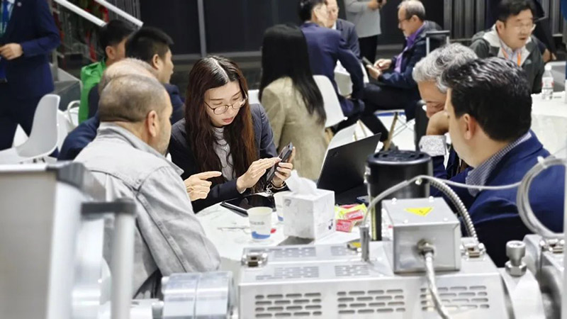 在展位現(xiàn)場(chǎng),隨處可見(jiàn)前來(lái)參觀交流的專業(yè)觀眾,有的是咨詢集團(tuán)產(chǎn)品,有的是咨詢的集團(tuán)業(yè)務(wù)。洽談區(qū)已經(jīng)不能滿足大家的熱情,展臺(tái)內(nèi),展機(jī)旁,都是大家相談甚歡的身影。
