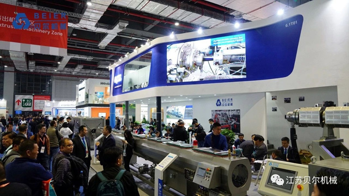 CHINAPLAS 2018 國際橡塑展將首次移師上海-虹橋-國家會展中心,于2018年4月24 - 27日舉行。預(yù)計(jì)展會面積超過32萬平方米,匯聚全球4000家展商。此次展會不僅規(guī)模上再次取得突破,展覽面積相比2016年擴(kuò)大逾30%,而且在主題專區(qū)的設(shè)立及劃分上亦將更加精準(zhǔn)與極致,全力打造全球高新科技展示交流平臺,向業(yè)界呈現(xiàn)更為專業(yè)化、高品質(zhì)的嶄新面貌。此次參展,江蘇貝爾機(jī)械依舊是兩個展位,貝爾機(jī)械在6.1館T01展位以及星貝爾在8.1館L67展位, 其中貝爾機(jī)械展示了3層共擠智能石油管生產(chǎn)線,目前環(huán)保態(tài)勢下關(guān)注度高的PP/PE軟料團(tuán)粒造粒系統(tǒng),以及配混設(shè)備部件。而星貝爾展示了全自動智能吹瓶系統(tǒng),并且現(xiàn)場實(shí)際開機(jī)操作。展會第一天早上八點(diǎn)半,參展人員都已就位,精神抖擻的投入迎接海內(nèi)外客戶的工作中。 江蘇貝爾機(jī)械參展人員對于這個四葉草的新展館感覺不錯,空間更大,通道更寬敞,同時0米層 夾層 16米層的分流也為容納更多的來訪者做好了準(zhǔn)備。要說缺點(diǎn)就是四葉草的造型設(shè)計(jì)讓葉柄連接處的人流更多,而稍外緣的位置人就少了。雖然展會只是4天而已,但是貝爾機(jī)械和星貝爾的業(yè)務(wù)人員早在一個月前就開始聯(lián)系客戶來訪參觀, 而市場部更是從4月1日就開始逐步對Chinaplas進(jìn)行了連續(xù)的宣傳預(yù)熱,更是編了口訣方便客戶在龐大的展館里定位到我們。 因此,貝爾/星貝爾展位上客戶一批接一批,與老朋友聊聊近況,了解一下我們帶來的新展機(jī),深入談?wù)勎磥淼暮献鳎晦D(zhuǎn)眼就到了下午,有幾位同事連盒飯都沒來得及去吃,而訂好的餐盒卻被在展位上談的起勁不忍離去的客戶吃了個精光。來自塑料領(lǐng)域的眾多媒體也是慕名而來,對貝爾展位和展機(jī)也是非常關(guān)注,作為中國塑料機(jī)械工業(yè)協(xié)會副會長單位,貝爾的研發(fā)方向、技術(shù)水平都在行業(yè)里有一些指向性的影響,這也讓我們備感責(zé)任,做好產(chǎn)品,帶頭研發(fā),讓中國塑機(jī)不斷更新,向節(jié)能、高效、環(huán)保、智能的方向不斷進(jìn)步。展會雖然辛苦,但充滿了歡樂和希望。江蘇貝爾機(jī)械墻上有一句話:"世界上最偉大的銷售方式就是真誠的幫助客戶",客戶會找到貝爾是因?yàn)樾枨螅悹柲茏屆课豢蛻舾械綕M意是因?yàn)槲覀兊膶I(yè)。