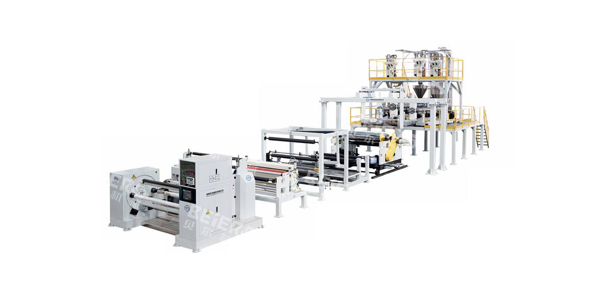 儲料 → 自動輸送 → 混料 → 擠出系統 → 流延系統 → 輸送 → 廢邊收集 → 分切 → 收卷
