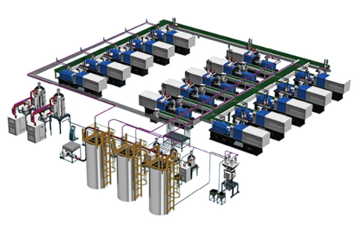 - 塑料集中供料系統可實現多種不同原料輸送,將處理原料按設定好種類合理分配,快速切換原料。