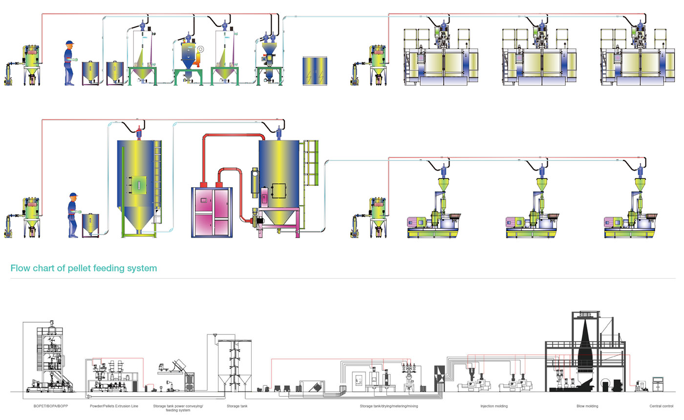 - 集中供料系統可解決原料擺放混亂,在添加原料時容易出錯,粉塵不能集中收集問題。可減少工人加料,原料不需要人工搬運,降低勞動強度。